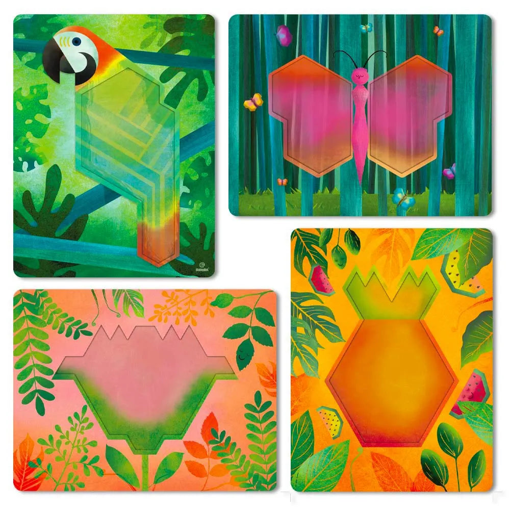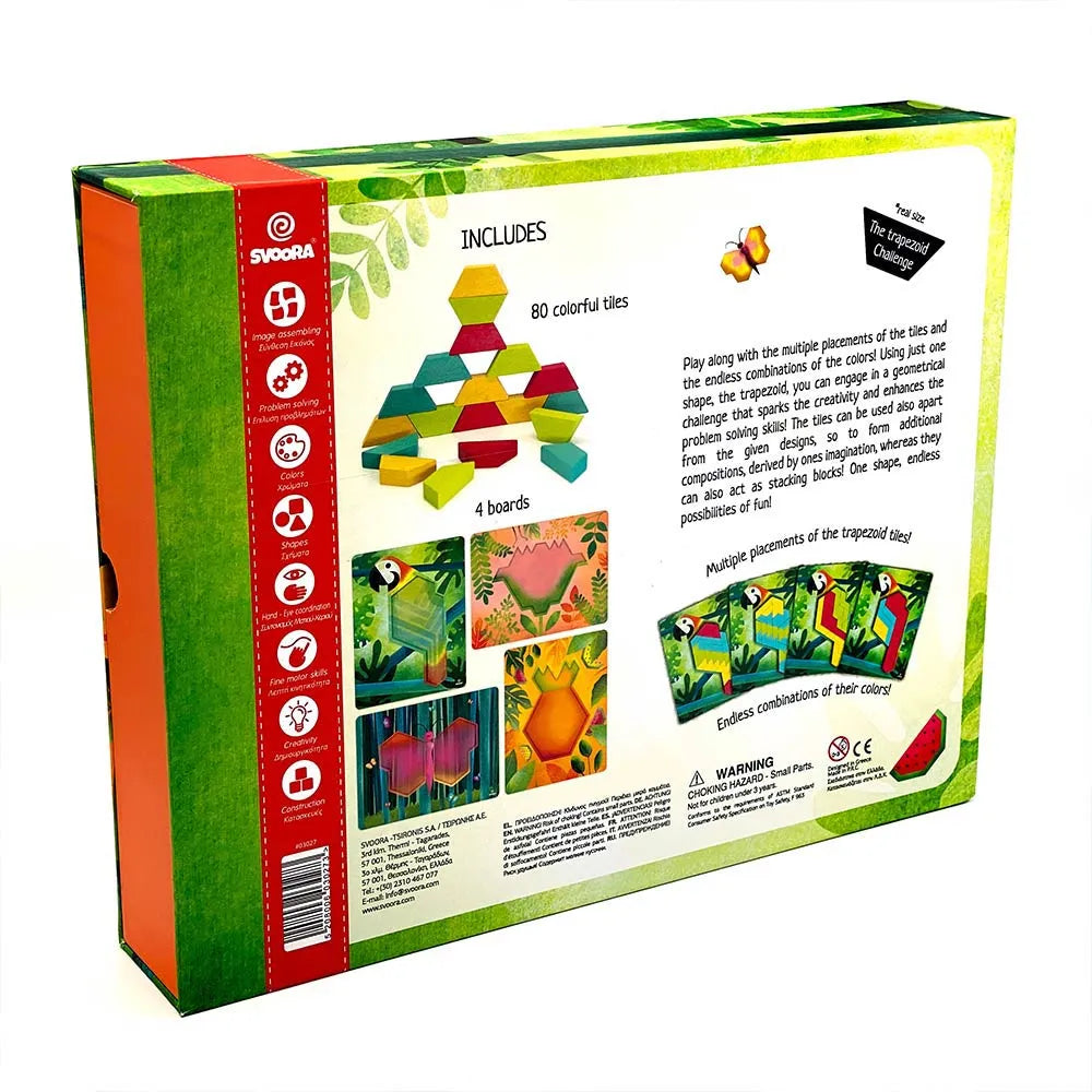 Αξιοποιήστε το χρόνο σας με μια γεωμετρική πρόκληση! Παίξτε με τα πολύχρωμα τουβλάκια που προσφέρονται για πολλαπλά στησίματα και ατελείωτους χρωματικούς συνδυασμούς! Εξασκήστε τη Δημιουργικότητά σας και βελτιώστε τις ικανότητές σας στην Επίλυση Προβλημάτων μόνο με ένα σχήμα, το Πολύγωνο! Τα τουβλάκια μπορούν να χρησιμοποιηθούν για το σχηματισμό πρόσθετων συνθέσεων που διεγείρουν τη φαντασία σας! Μόνα ως τουβλάκια τοποθέτησης ή σε συνδυασμό με τους πίνακες και τα σχέδιά τους! Ένα σχήμα, ατελείωτες ώρες διασκέδασης! Πολλαπλές επιλογές τοποθέτησης! Αμέτρητοι συνδυασμοί Χρωμάτων! Διαθέσιμο σε 2 εκδόσεις: 'Φύση' και 'Εξερεύνηση΄.