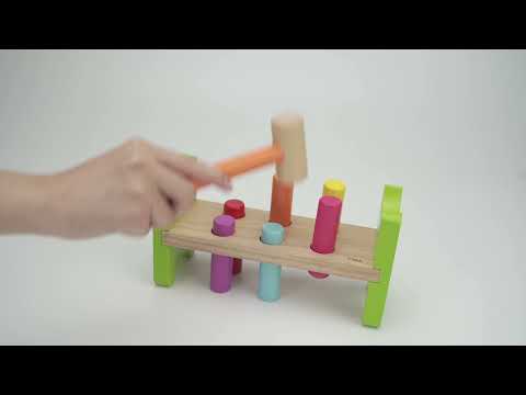Μια βάση από καρφώματα με σφυράκι από την εταιρία Viga. Τα παιδιά χτυπάνε με το σφυράκι τα ξύλα, δραστηριότητα που ενδυναμώνει την κίνηση του χεριού, τον συντονισμό ματιού-χεριού και βελτιώνει την λεπτή κινητικότητα. Τα διαφορετικά χρώματα των ξύλων που καλείται να πετύχει το παιδί το βοηθούν να αντιληφθεί τις έννοιες των χρωμάτων. Το σετ περιλαμβάνει ένα σφυράκι και 6 ξύλΙνες ράβδους σε διαφορετικά χρώματα. Κατάλληλο για παιδιά από 2 έως 5 ετών. Διάσταση συσκευασίας: Μ22,5cmx Y12cmx Β8 cm