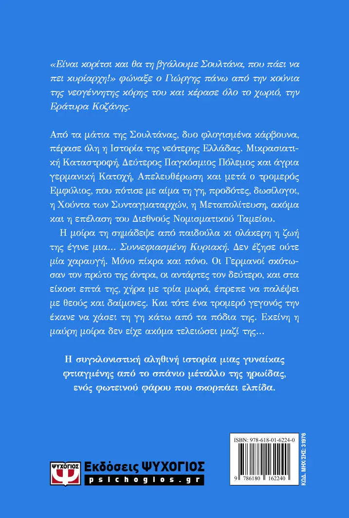 Από τα μάτια της Σουλτάνας, δυο φλογισμένα κάρβουνα, πέρασε όλη η Ιστορία της νεότερης Ελλάδας. Μικρασιατική Καταστροφή, Δεύτερος Παγκόσμιος Πόλεμος και άγρια γερμανική Κατοχή. Απελευθέρωση και μετά ο τρομερός Εμφύλιος, που πότισε με αίμα τη γη, προδότες, δωσίλογοι, η Χούντα των Συνταγματαρχών, η Μεταπολίτευση, ακόμα και η επέλαση του Διεθνούς Νομισματικού Ταμείου.