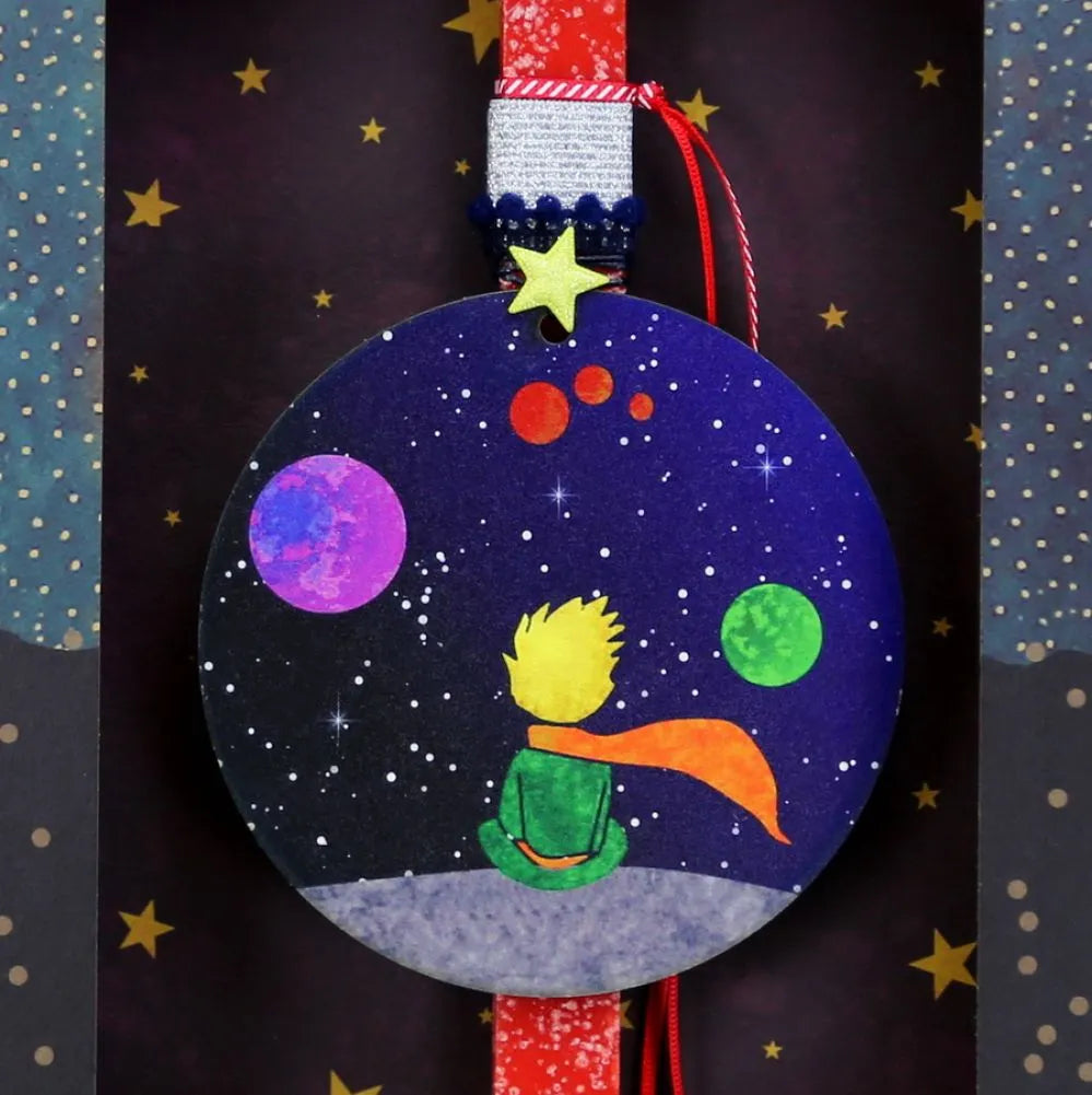 Πασχαλινή λαμπάδα διακοσμημένη με μια ζωγραφιά από ένα παιδί που μετράει τα’ άστρα και ονειρεύεται. Τα υλικά διακόσμησης είναι υψηλής ποιότητας και εισάγονται αποκλειστικά από την SYNCHRONIA. Τα αντικείμενα σχεδιάζονται ή επιλέγονται όχι μόνο για την αισθητική αλλά και για την αυθεντικότητα, την φιλικότητα προς το περιβάλλον και το δίκαιο εμπόριο.