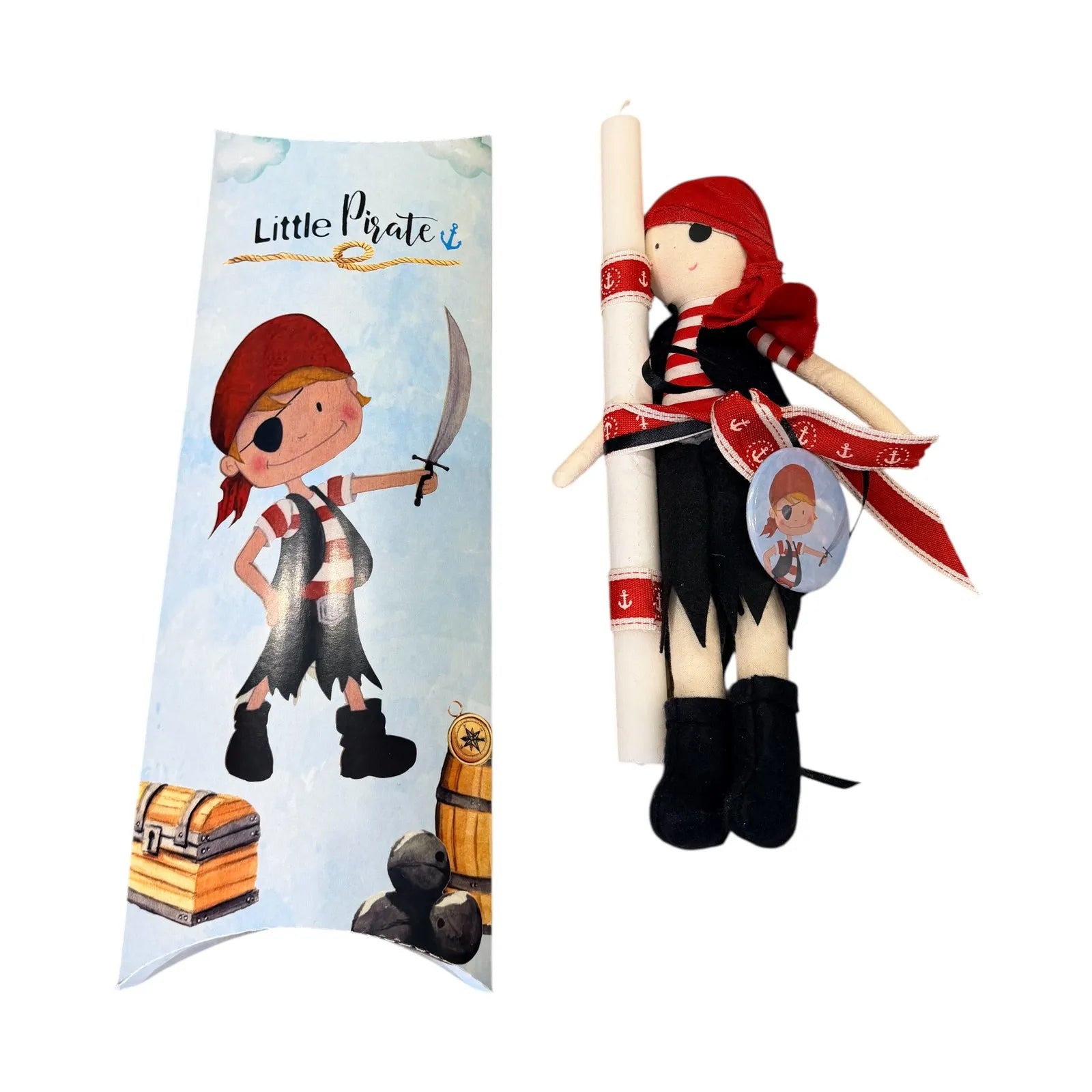 • Ο Ατρόμητος Καπετάνιος: Περιλαμβάνει χειροποίητο πάνινο Πειρατή (30εκ.), με το κλασικό του καπέλο και τη στολή του, έτοιμο να κρατήσει συντροφιά στο παιδί σε κάθε φανταστικό ταξίδι, πολύ μετά την Ανάσταση.