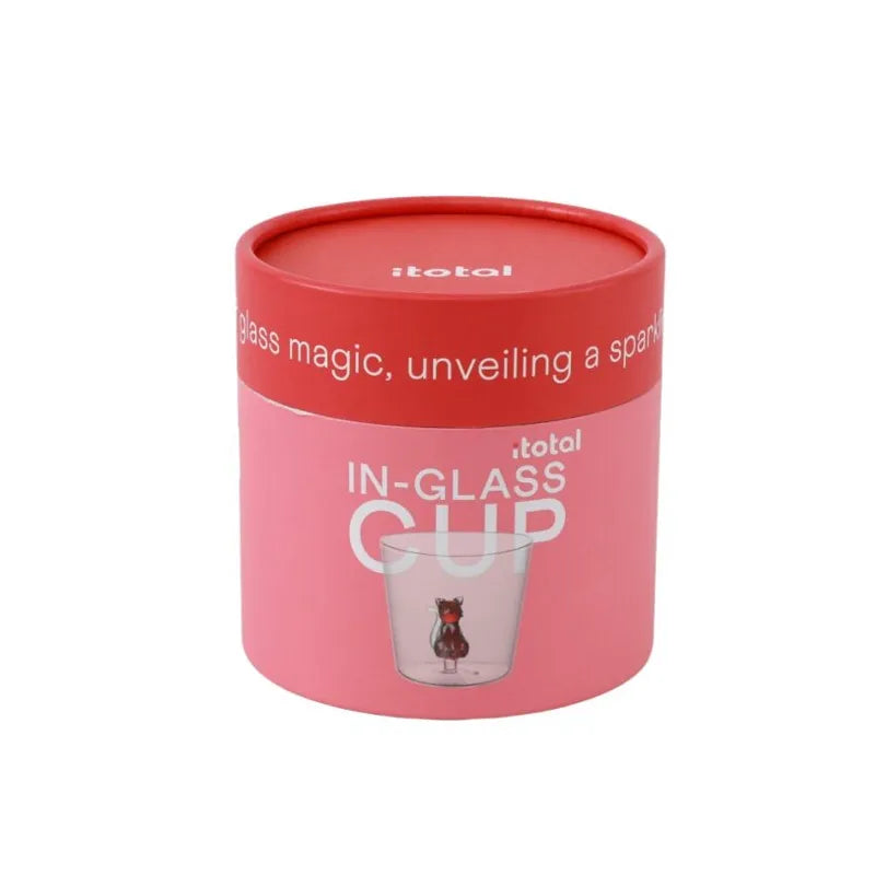 Η πραγματική μαγεία, όμως, κρύβεται στο εσωτερικό τους: μέσα στη διάφανη φόρμα φιλοξενείται ένα παιχνιδιάρικο γυάλινο γλυπτό, σχολαστικά διαμορφωμένο στο χέρι. Ένα διακριτικό λουλούδι ή ένα μικροσκοπικό ζωάκι μετατρέπει κάθε γουλιά σε μια μικρή στιγμή έκπληξης και χαράς.