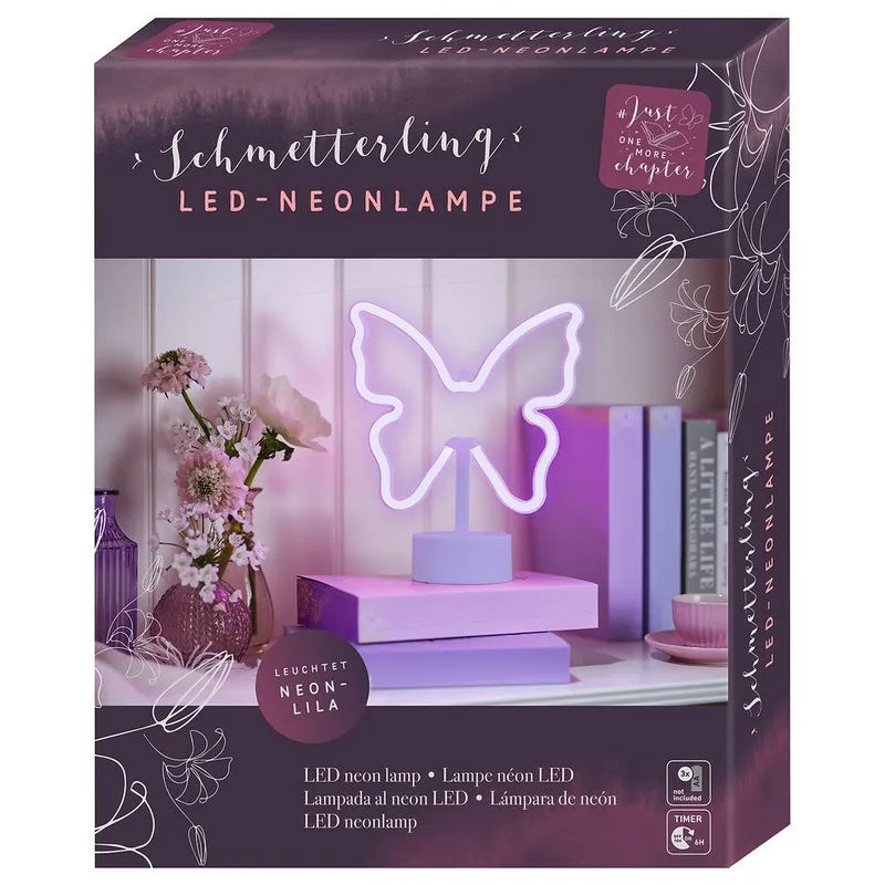 Η LED λάμπα σε κομψό σχήμα πεταλούδας χαρίζει με το απαλό, νεον μωβ φως της μια μαγευτική ατμόσφαιρα σε κάθε χώρο. Ιδανική για λάτρεις των ρομαντικών και New Adult μυθιστορημάτων, που θέλουν να εκφράσουν την αγάπη τους για τα βιβλία και μέσα από τη διακόσμηση του σπιτιού τους.