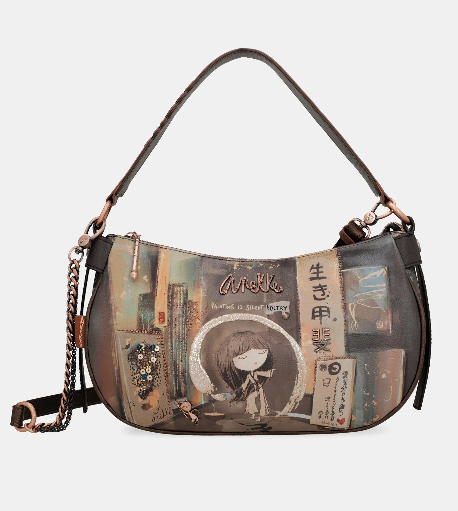 Αφήστε τη δημιουργικότητά σας να κυλά ελεύθερα με αυτήν την κομψή οβάλ τσάντα από τη συλλογή Shōen της Anekke. Ένα μοναδικό αξεσουάρ που συνδυάζει ιαπωνική αισθητική, τέχνη και πρακτικότητα, δημιουργώντας έναν σύγχρονο τρόπο για όσες τολμούν να εκφραστούν.