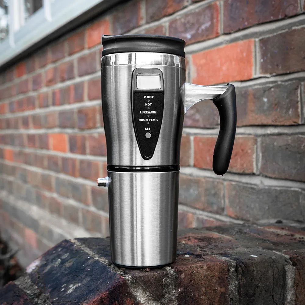 Χάρη στο Heated Travel Mug επιλέγετε εσείς το επιθυμητό επίπεδο θερμοκρασίας από τέσσερα διαφορετικά επίπεδα θέρμανσης— θερμοκρασία δωματίου, χλιαρό, ζεστό, πολύ ζεστό —με ψηφιακή οθόνη LCD για οπτική ένδειξη της επιλεγμένης θερμοκρασίας.