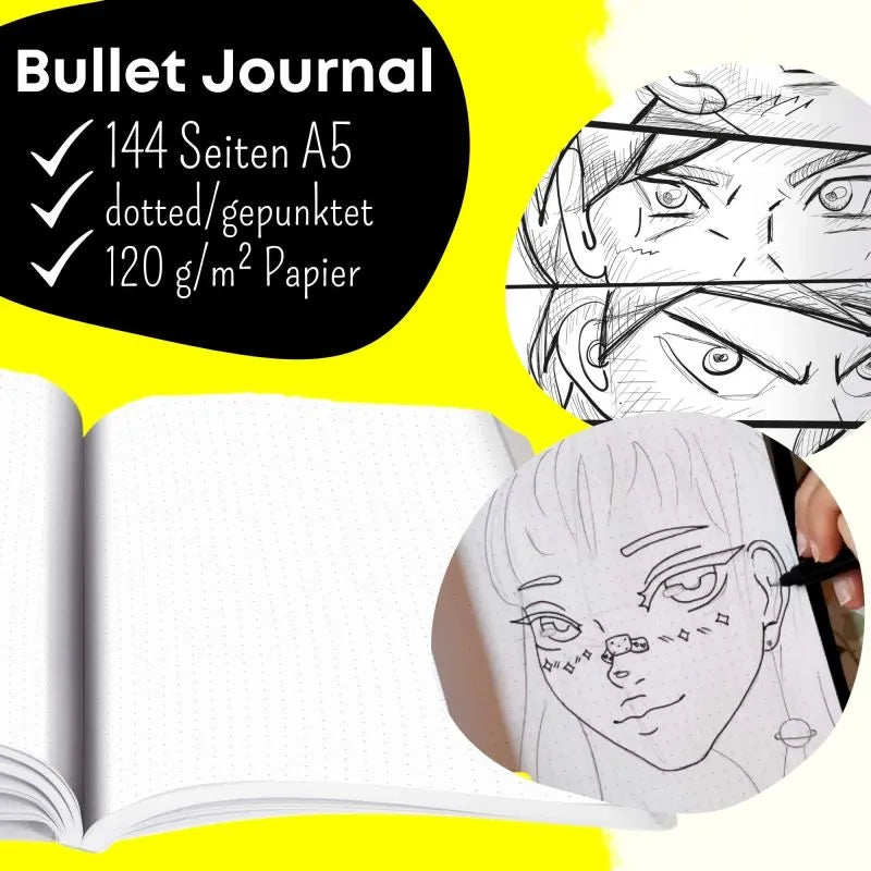 Ανακάλυψε το Bullet Journal Manga, το ιδανικό σημειωματάριο για handlettering, sketching, journaling ή δημιουργική γραφή. Με 72 σελίδες υψηλής ποιότητας (120g/m²) και τελείες (dotted layout) για εύκολη καθοδήγηση, προσφέρει τον τέλειο καμβά για τις ιδέες σου.