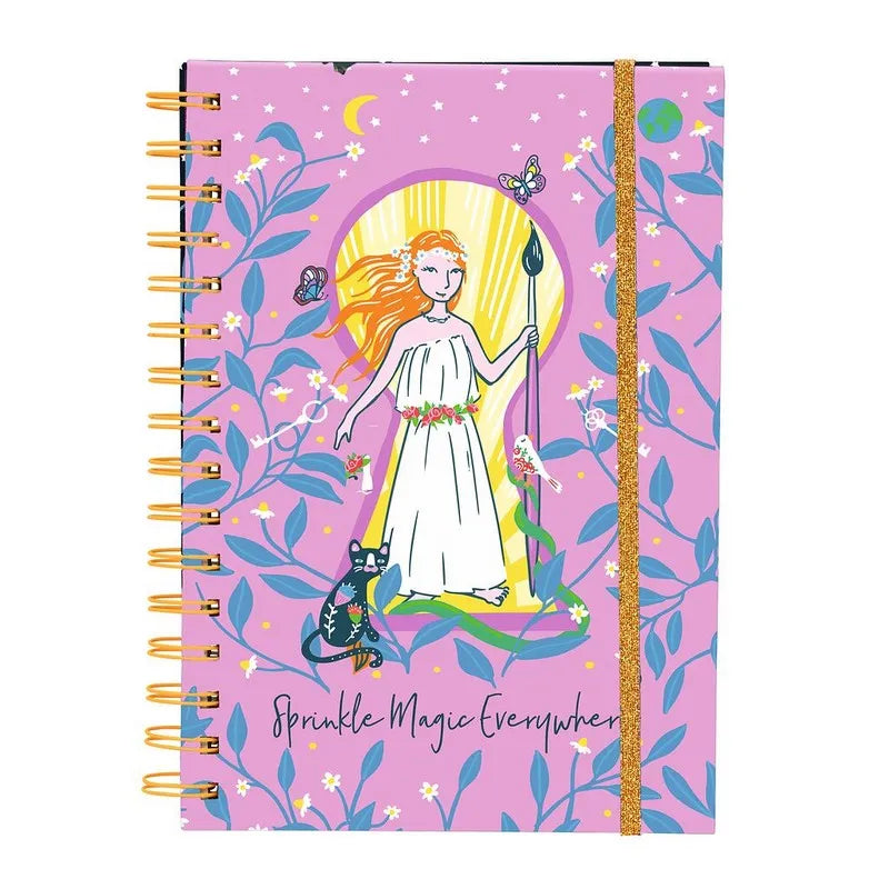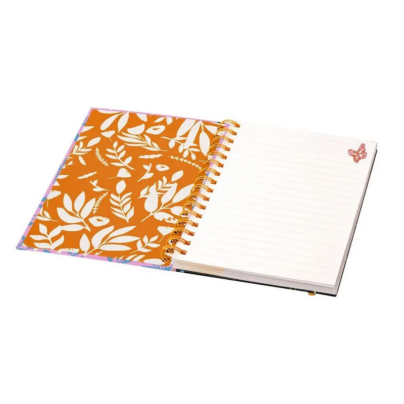 Χάρη στη σπιράλ βιβλιοδεσία ανοίγει εύκολα, ενώ το λαστιχάκι κρατάει τα πάντα με ασφάλεια στη θέση τους. Οι εσωτερικές σελίδες είναι γραμμωτές και διακοσμημένες με όμορφα μοτίβα – ιδανικό για όσους θέλουν να αποτυπώνουν τις σκέψεις τους με κομψότητα.