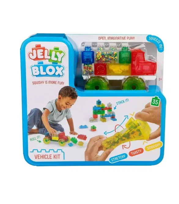 Το σετ περιλαμβάνει 30 Jelly Blox και ένα ανθεκτικό κουτί αποθήκευσης, το οποίο μετατρέπεται εύκολα σε βάση κατασκευών: απλώς γύρισε το καπάκι και ξεκίνα να χτίζεις. Όταν τελειώσει το παιχνίδι, όΤα Jelly Blox από την εταιρεία Goliath είναι ένα πρωτότυπο παιχνίδι κατασκευών για νήπια και προσχολικάκιων ηλικιών (2+), το οποίο συνδυάζει την κλασική έννοια του “building blocks” με την αίσθηση ευχάριστης, squishy υφής για διαδραστικό αισθητηριακό παιχνίδι.Ορισμένα τουβλάκια περιέχουν ειδικά υλικά αισθητηριακής ενασχόλησης, όπως άμμο, αφρό μπάλες, μικρά αστεράκια ή τουβλάκια που προσθέτουν ενδιαφέρουσα, οπτικοακουσθητηριακή εμπειρία στο παιχνίδι.Είναι ασφαλή, εύκολα στον καθαρισμό (με λίγο σαπούνι και νερό) και πρόσφατα απέκτησαν MESH πιστοποίηση, η οποία αναγνωρίζει παιχνίδια που ενισχύουν την ψυχική, συναισθηματική και κοινωνική ανθεκτικότητα του παιχνιδιού.λα τα τουβλάκια αποθηκεύονται γρήγορα και πρακτικά στο κουτί.