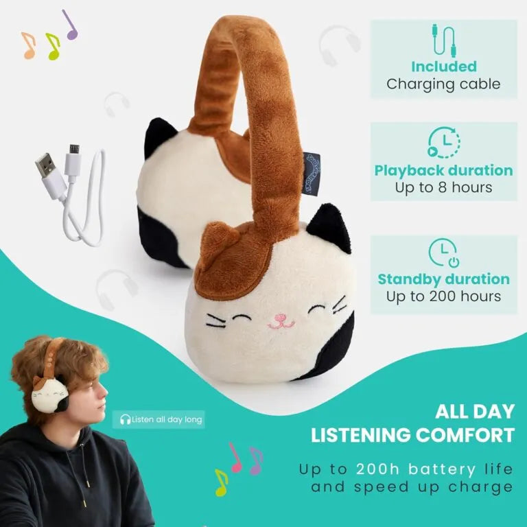 Lazerbuilt Squishmallows Cam the Cat – Λούτρινα Ασύρματα Παιδικά Ακουστικά με Μικρόφωνο