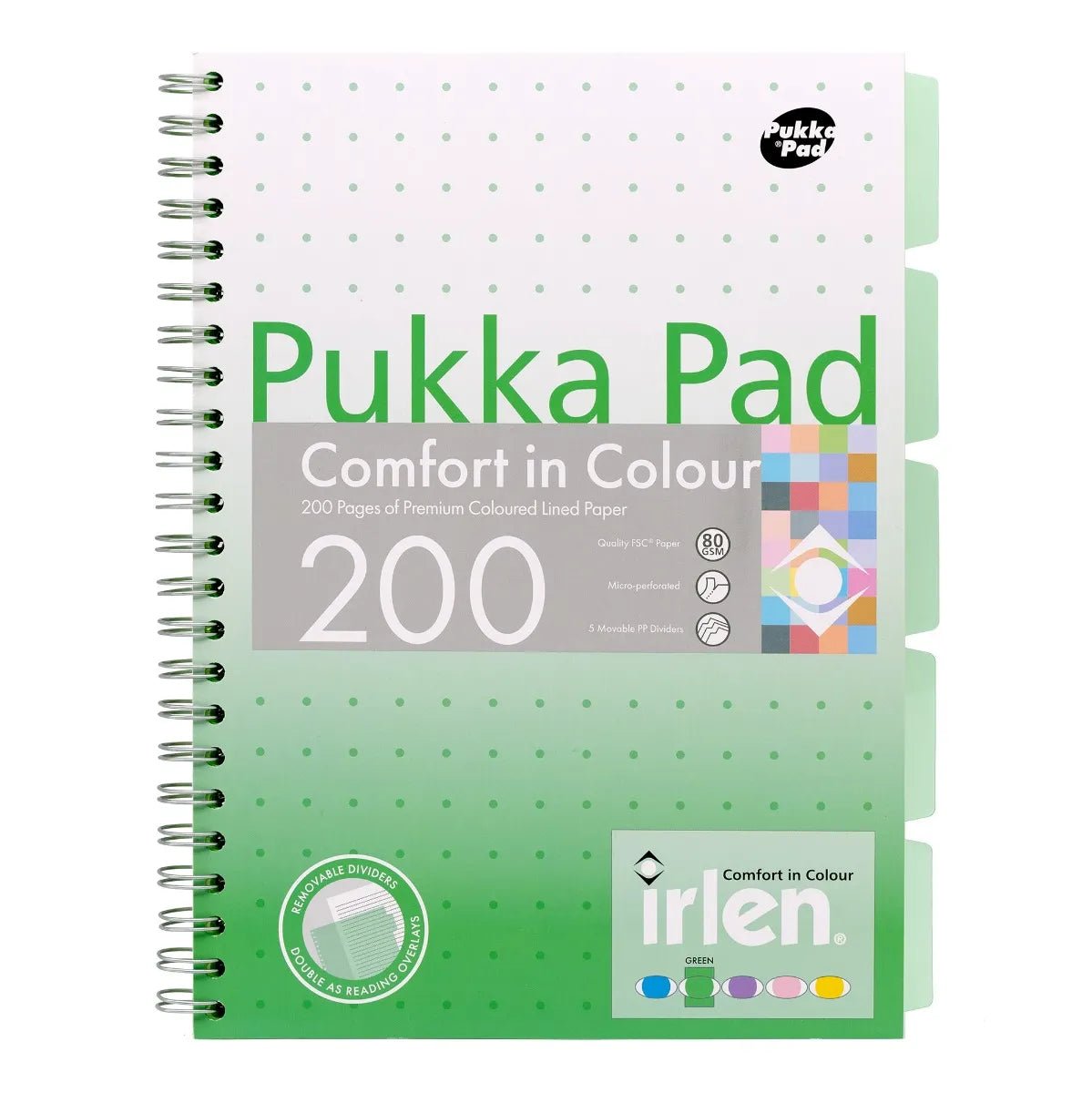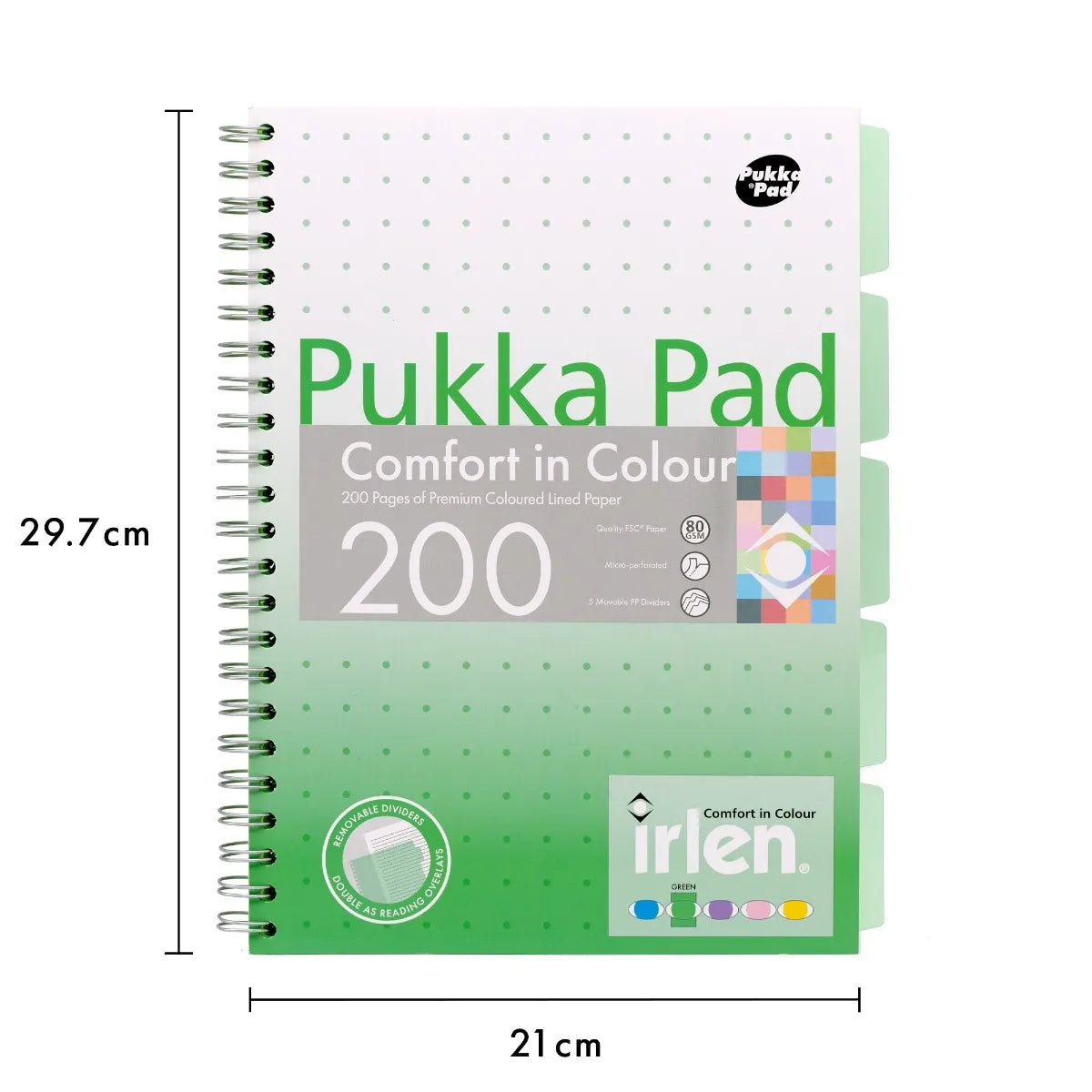 ΤΕΤΡΑΔΙΟ ΔΙΠΛΟ ΣΠΙΡΑΛ A4 ΧΡΩΜΑΤΙΣΤΟ ΠΡΑΣΙΝΟ IRLEN 200ΣΕΛ. 80 GSM ΧΡΩΜΑ PUKKA