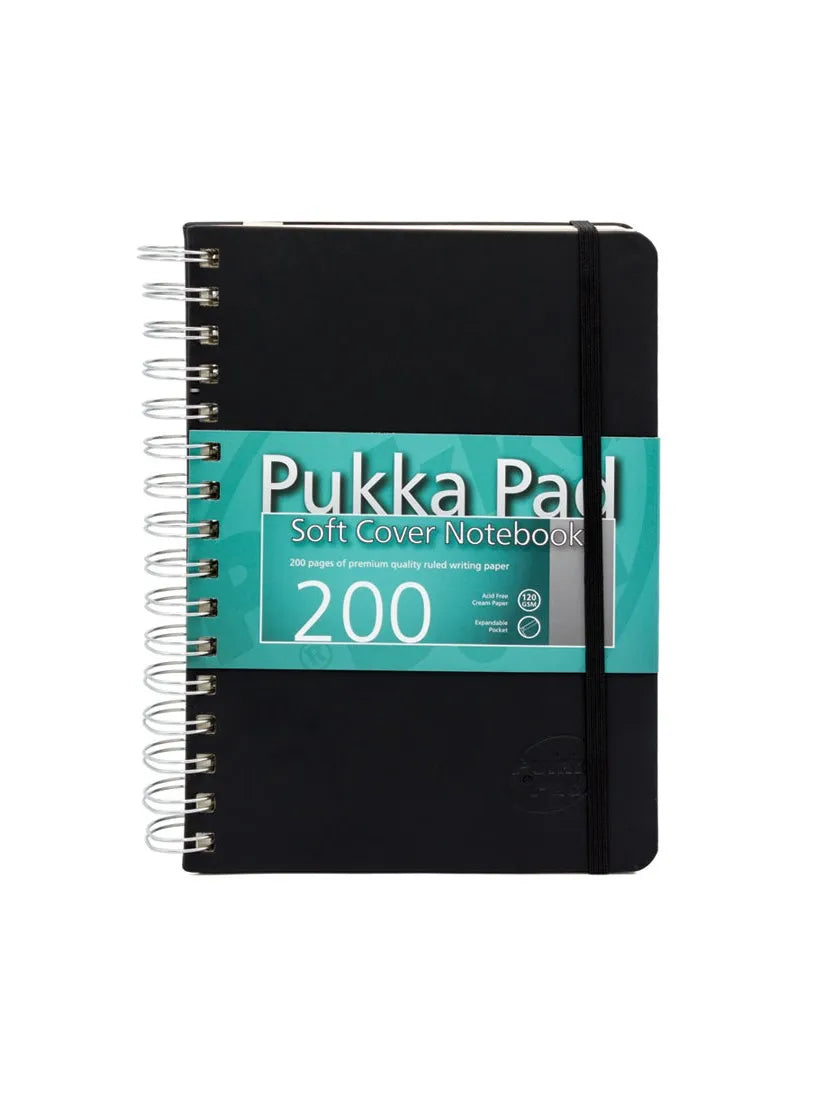 ΣΗΜΕΙΩΜΑΤΑΡΙΟ *ΔΙΠΛΟ ΣΠΙΡΑΛ A5 ΜΑΥΡΟ ΕΞΩΦΥΛΛΟ ΜΑΛΑΚΟ ΜΕ ΛΑΣΤΙΧΟ 200ΣΕΛ. 120 GSM PUKKA
