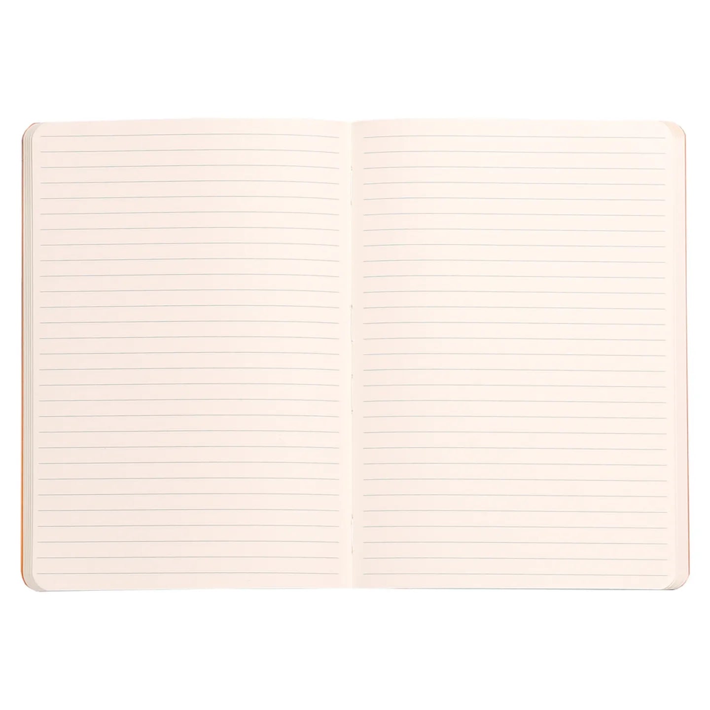 Διαθέτει πορτοκαλί ελαστικό κλείσιμο, 80 φύλλα από χαρτί 90 gsm σε χρώμα ελεφαντόδοντου με απαλή βελούδινη υφή (ivory brushed vellum paper), πορτοκαλί σελιδοδείκτη κορδέλα, πορτοκαλί επεκτεινόμενη εσωτερική τσέπη, καθώς και εμπρόσθιες και οπίσθιες σελίδες ίδιου χρώματος.