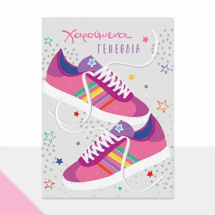 ΚΑΡΤΑ PETITE LAURA ΓΕΝΕΘΛΙΩΝ SNEAKERS ΡΟΖ 14 x11,5 cm