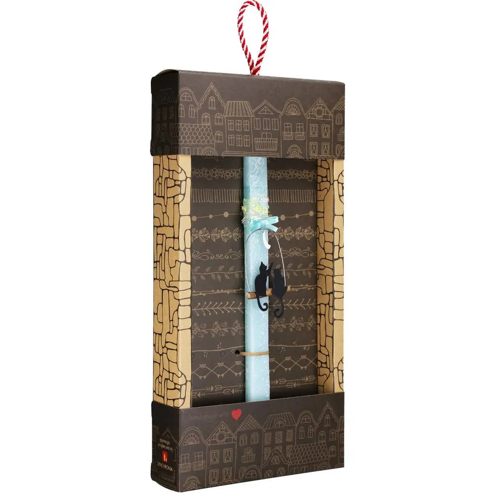 Μια πασχαλινή λαμπάδα που μοιάζει με μικρή ιστορία αγάπης κάτω από το φεγγάρι. Οι δύο γατούλες καθισμένες στο κλαδί συμβολίζουν συντροφικότητα και τρυφερότητα, ιδανική για κορίτσια, εφήβους αλλά και ενήλικες που αγαπούν τα ρομαντικά σχέδια. Χειροποίητη με προσεγμένα υλικά και κομψή οικολογική συσκευασία που την κάνει έτοιμη για δώρο.