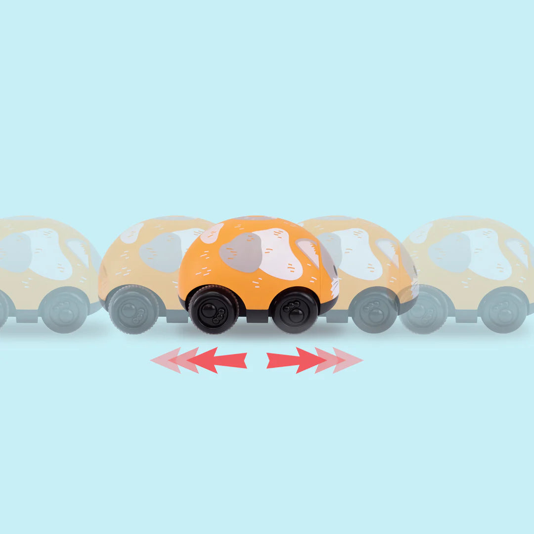 Ένα παιχνίδι γάτας και ποντικιού σε μέγεθος ιδανικό για μικρά χεράκια! Τα μικρά απλώς σπρώχνουν και τραβούν τα ζωάκια, τα αφήνουν και τα βλέπουν να τρέχουν γρήγορα στο πάτωμα.