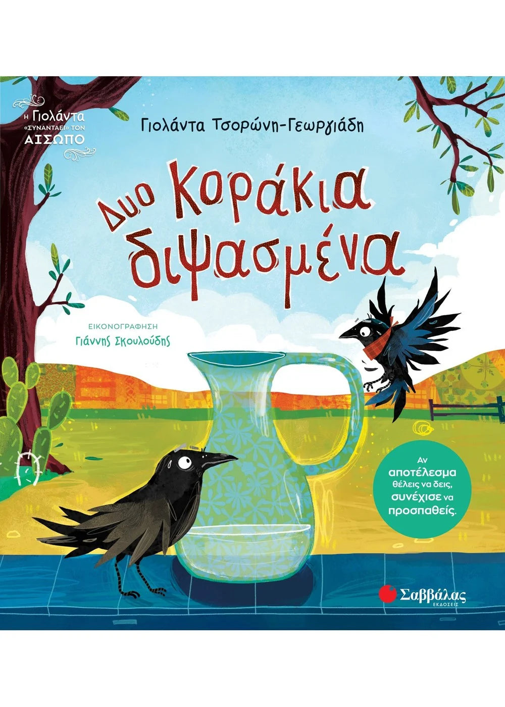 Ο μπαμπάς κόρακας και το μικρό του κορακάκι ταξιδεύουν πολλές ώρες και έχουν... κορακιάσει από τη δίψα. Κάποτε βρίσκουν μια κανάτα με λιγοστό νερό. Πώς όμως να πιουν με το κοντό τους ράμφος; Ο μπαμπάς, μετά από πολλή σκέψη, έχει μια καταπληκτική ιδέα! Οι πετρούλες, που βρίσκονται σκόρπιες γύρω τους, αυτές... αυτές θα τους ξεδιψάσουν! Πώς άραγε;