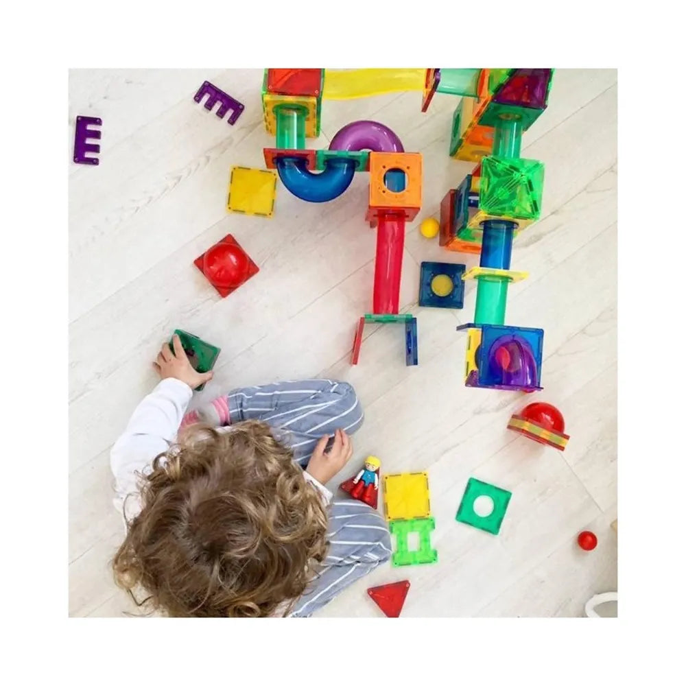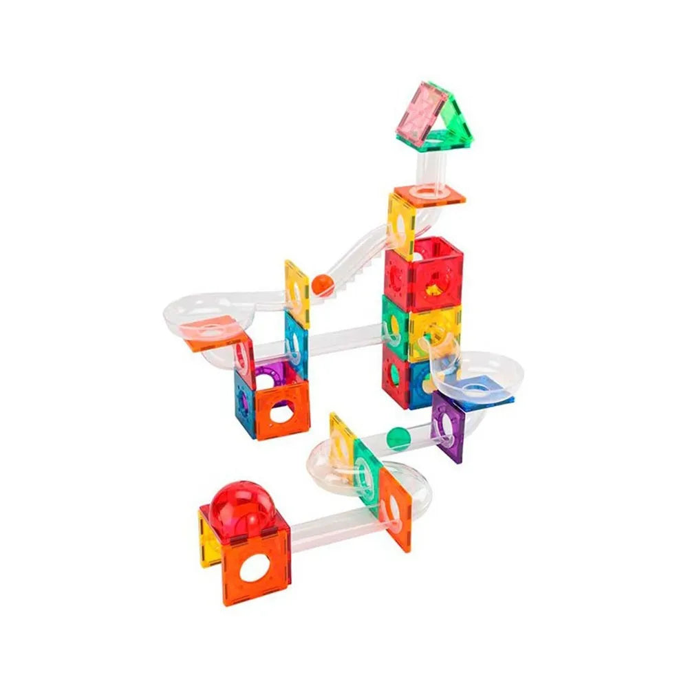 Δημιουργήστε μοναδικούς συνδυασμούς με τα μαγνητικά κομμάτια του σετ αυτού της εταιρίας IMANIX και κατασκευάστε μοναδικές διαδρομές κατρακύλας για μπάλες. Όταν ολοκληρώσετε την κατασκευή, αφήστε μια ή ακόμα και τις 6 μπάλες που περιλαμβάνει το σετ να κατρακυλήσουν από την αφετηρία και παρακολουθήστε τη διαδρομή τους. Μια ενασχόληση που ενθαρρύνει τα παιδιά να αναπτύξουν τη δημιουργικότητά τους, τη λεπτή κινητικότητα, τον συντονισμό ματιού – χεριού καθώς και τη φαντασία τους. Η συσκευασία περιλαμβάνει 70 μαγνητικά κομμάτια και βιβλίο οδηγιών. Όλα τα μέρη του παιχνιδιού έχουν τέτοιο μέγεθος, που δε μπορούν να καταποθούν και είναι κατασκευασμένα από μη τοξικά υλικά, χωρίς BPA και λάτεξ.
