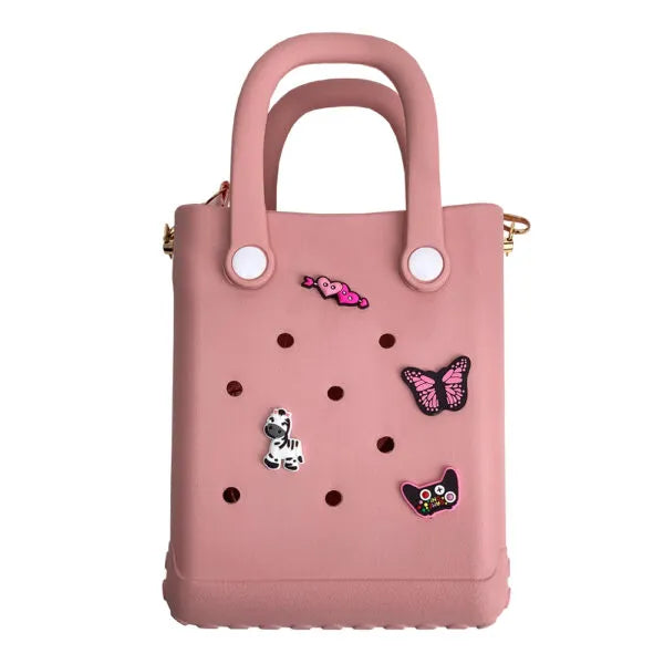 CACTUS CROQBAG με διακοσμητικά pins 16x20 cm - ΡΟΖ