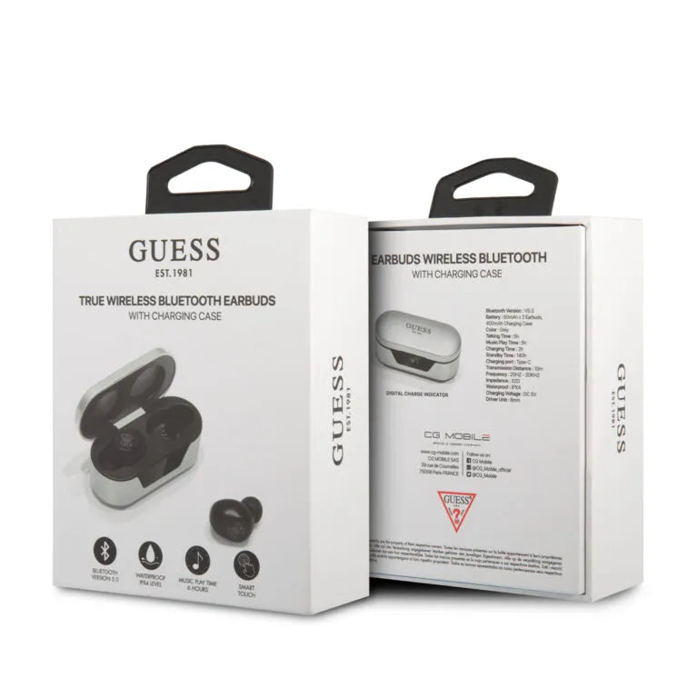 Guess Bluetooth Stereo Headset 5.0 True Wireless Ασύρματα Ακουστικά & θήκη φόρτισης (Silver – GUTWST31EG)