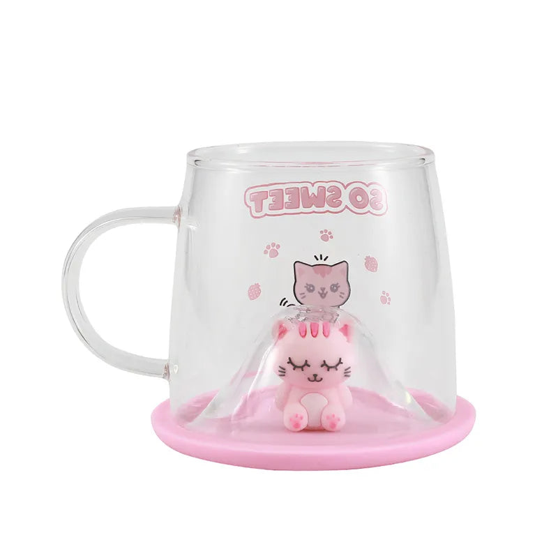 💖 Όμορφη Cute Γυάλινη Κούπα με Καπάκι Σιλικόνης & Μικρό Ζωάκι – 300ml