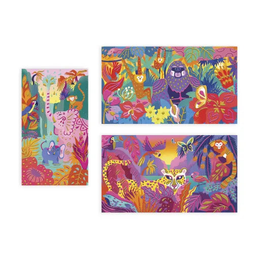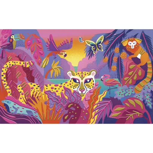 Ζήστε μια περιπέτεια στην καρδιά της ζούγκλας! Αυτό το δημιουργικό κιτ περιλαμβάνει 3 εικόνες. Ακολουθώντας βήμα προς βήμα τις οδηγίες, τα παιδιά χρειάζεται να συμπληρώσουν τις εικόνες με χρυσό και φωσφορίζον ροζ τρισδιάστατο χρώμα. Θα χρειαστούν περίπου 2 ώρες και για τις 3 εικόνες. Αυτή η δραστηριότητα συμβάλλει στην ανάπτυξη της συγκέντρωσης και των λεπτών κινητικών δεξιοτήτων. Δραστηριότητα με τα χέρια για παιδιά ηλικίας 7 ετών και άνω.