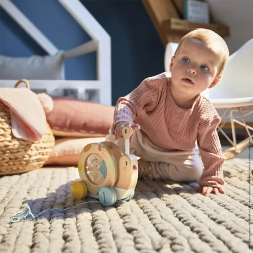 H Σάμι το σαλιγκάρι δεν ανησυχεί ποτέ! Αυτό το διασκεδαστικό ξύλινο σαλιγκάρι για περπάτημα με τα όμορφα ανοιξιάτικα χρώματά του θα διασκεδάσει τα νήπια από 1 έτους.