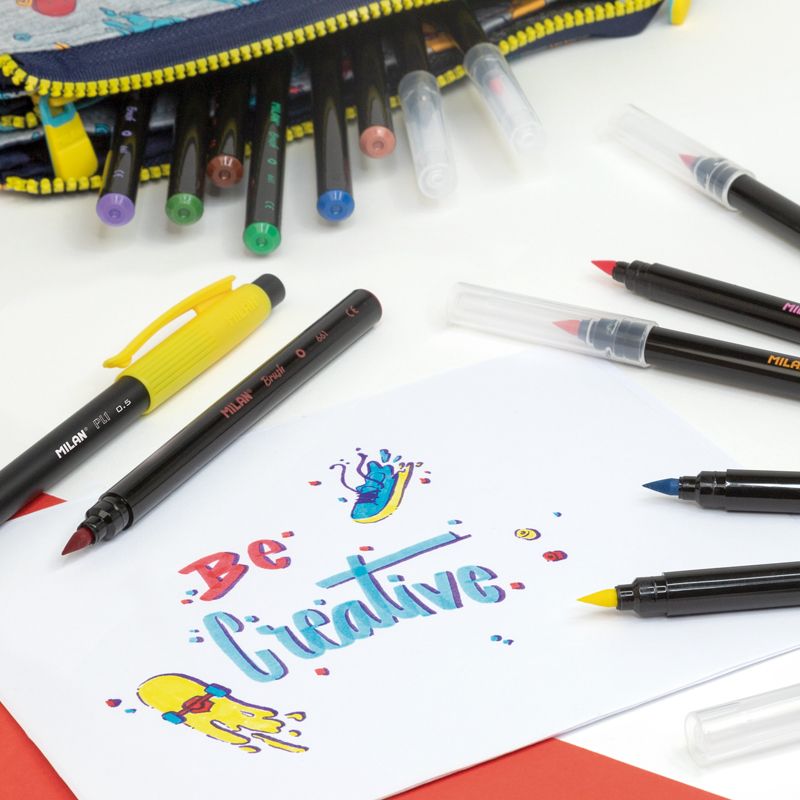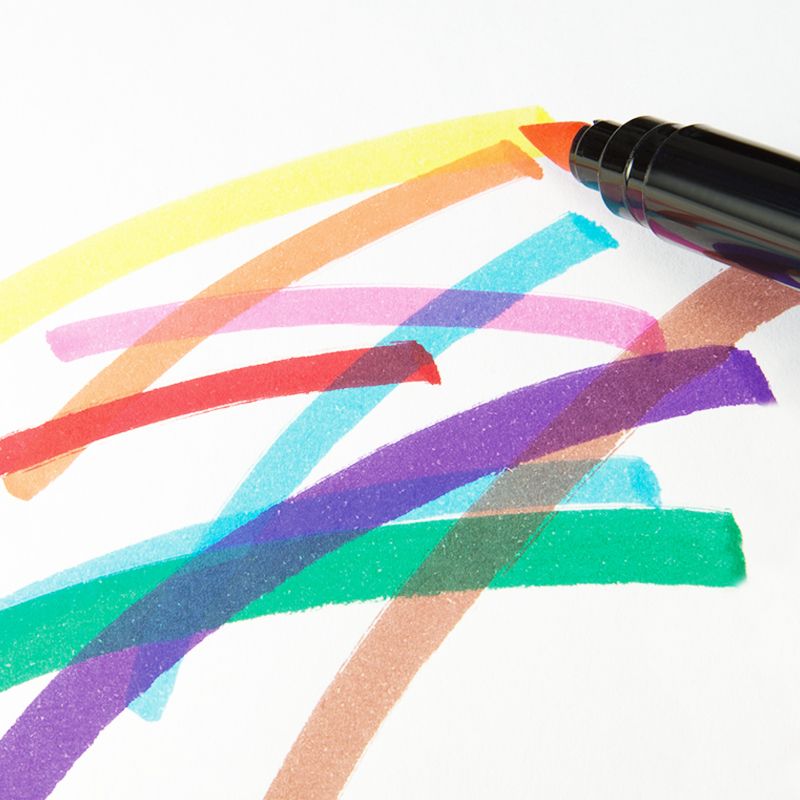 Μαρκαδόροι που δημιουργούν πινελιές από 0,5 mm έως 4 mm. Ιδανικοί για καλλιγραφία, γραφή με διαφορετικά πάχη γραμμών και ανάμειξη χρωμάτων. Διατίθενται σε 10 χρώματα: κίτρινο, ναυτικό μπλε, μπλε, μωβ, καφέ, πορτοκαλί, μαύρο, κόκκινο, ροζ και πράσινο. Το υδατοδιαλυτό μελάνι προσφέρει ζωηρά χρώματα, εύκολα στην εφαρμογή και στην ανάμειξη. Αφαιρείται εύκολα από τα περισσότερα υφάσματα (μουλιάστε το ρούχο σε κρύο νερό για μία ώρα και στη συνέχεια πλύνετέ το στο πλυντήριο σε χαμηλή θερμοκρασία). Διαθέτουν αεριζόμενο καπάκι ασφαλείας.