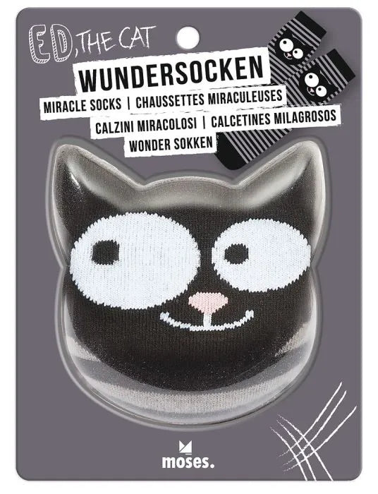 Μέσα σε αυτόν τον παιχνιδιάρικο κεφάλι γάτας κρύβεται ένα ζευγάρι δροσερές κάλτσες με ρίγες και το χαρακτηριστικό εκφραστικό πρόσωπο του Ed. Απλώς ξεδιπλώστε τις – και ο μικρός γατούλης μεταμορφώνεται σε ένα άνετο ζευγάρι κάλτσες για την καθημερινότητα ή τη χαλάρωση στον καναπέ. Ιδανικό για λατρεις των γατών, αλλά και για κάθε περίσταση που θέλετε να ξεχωρίσετε!