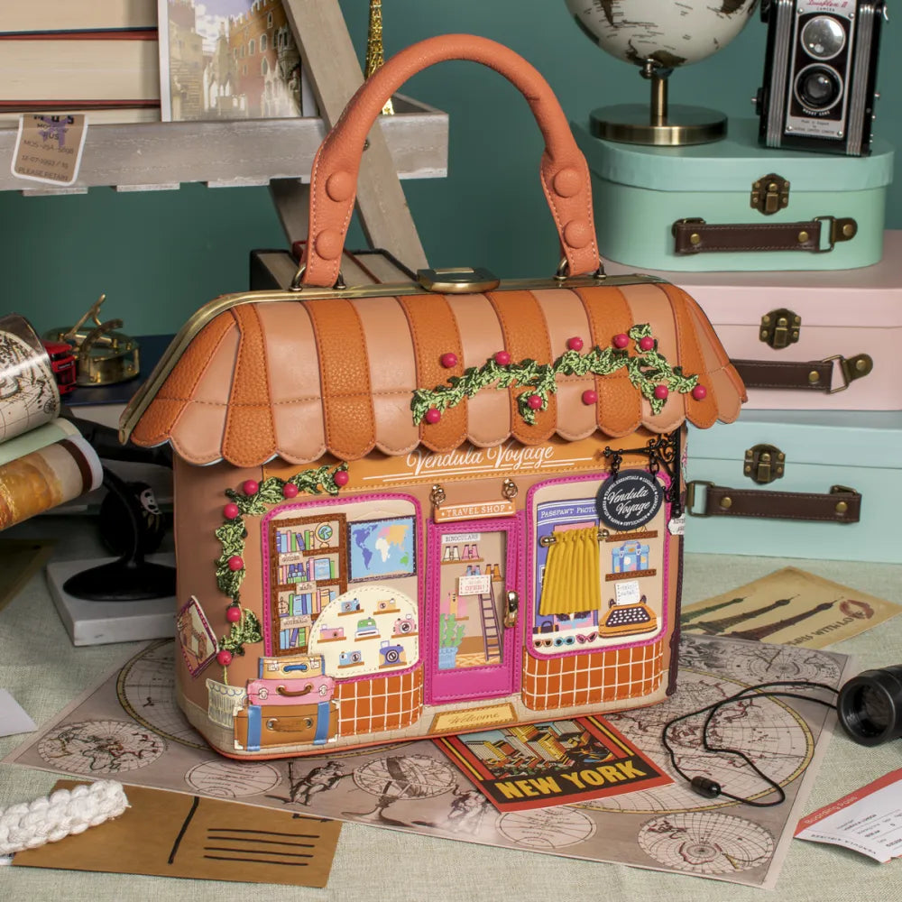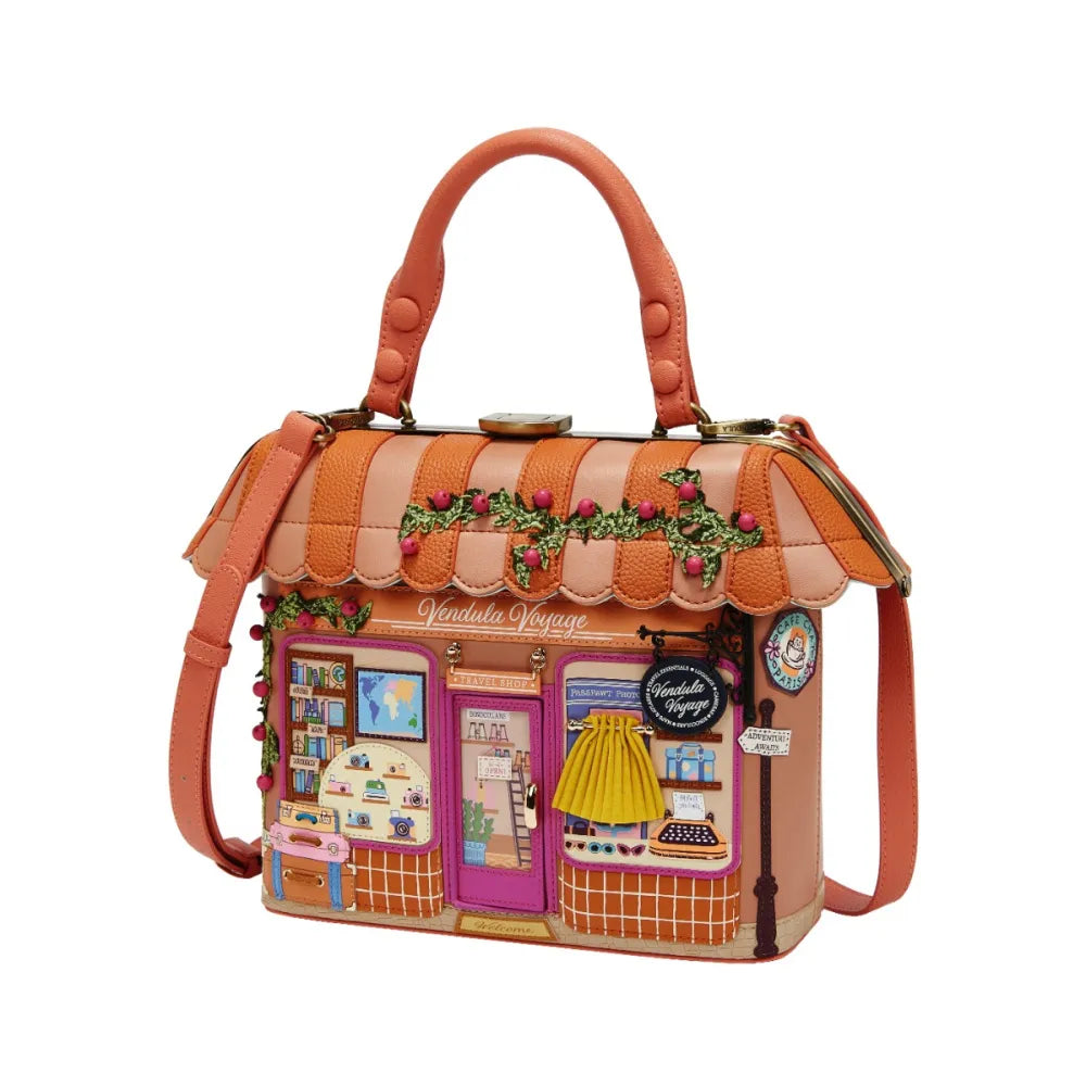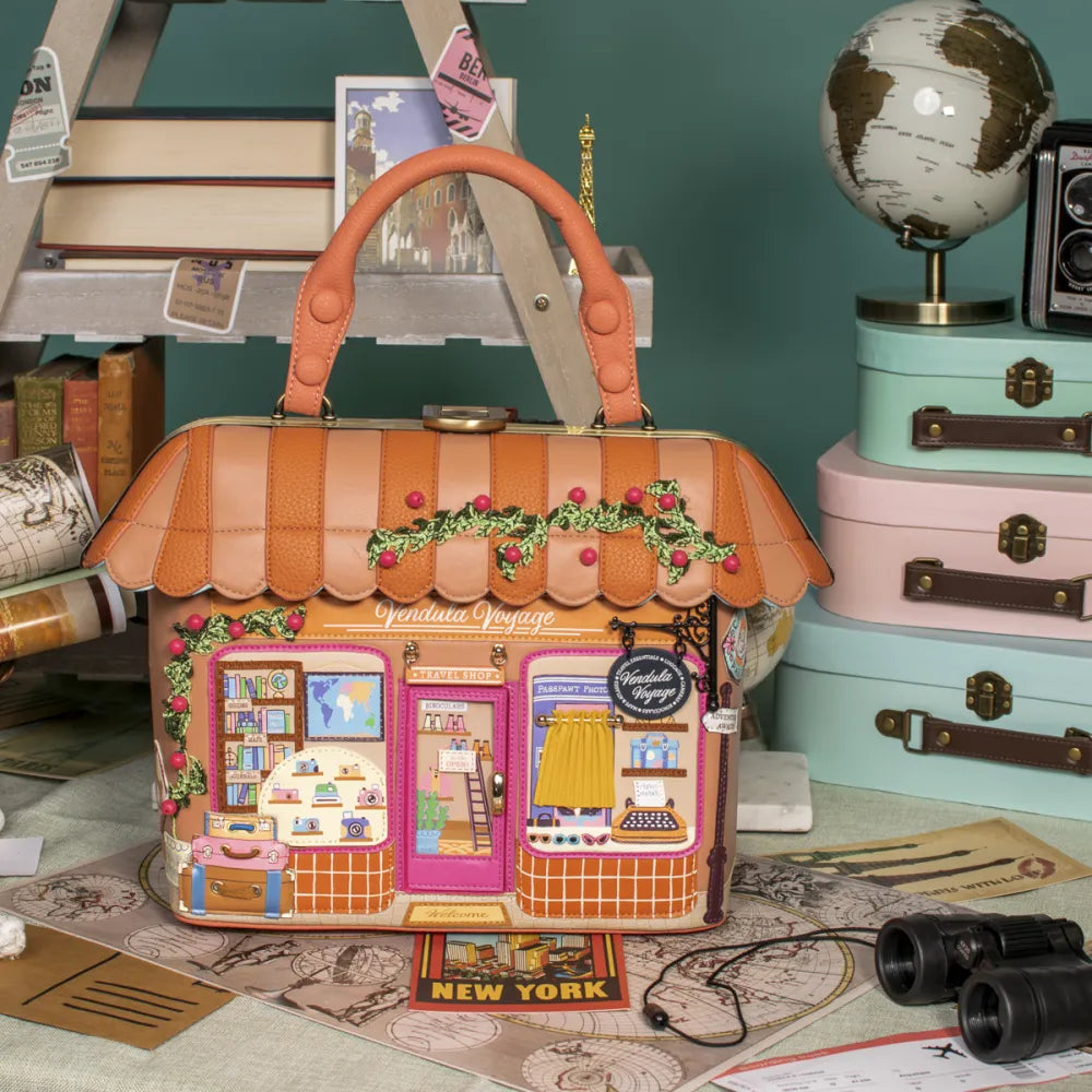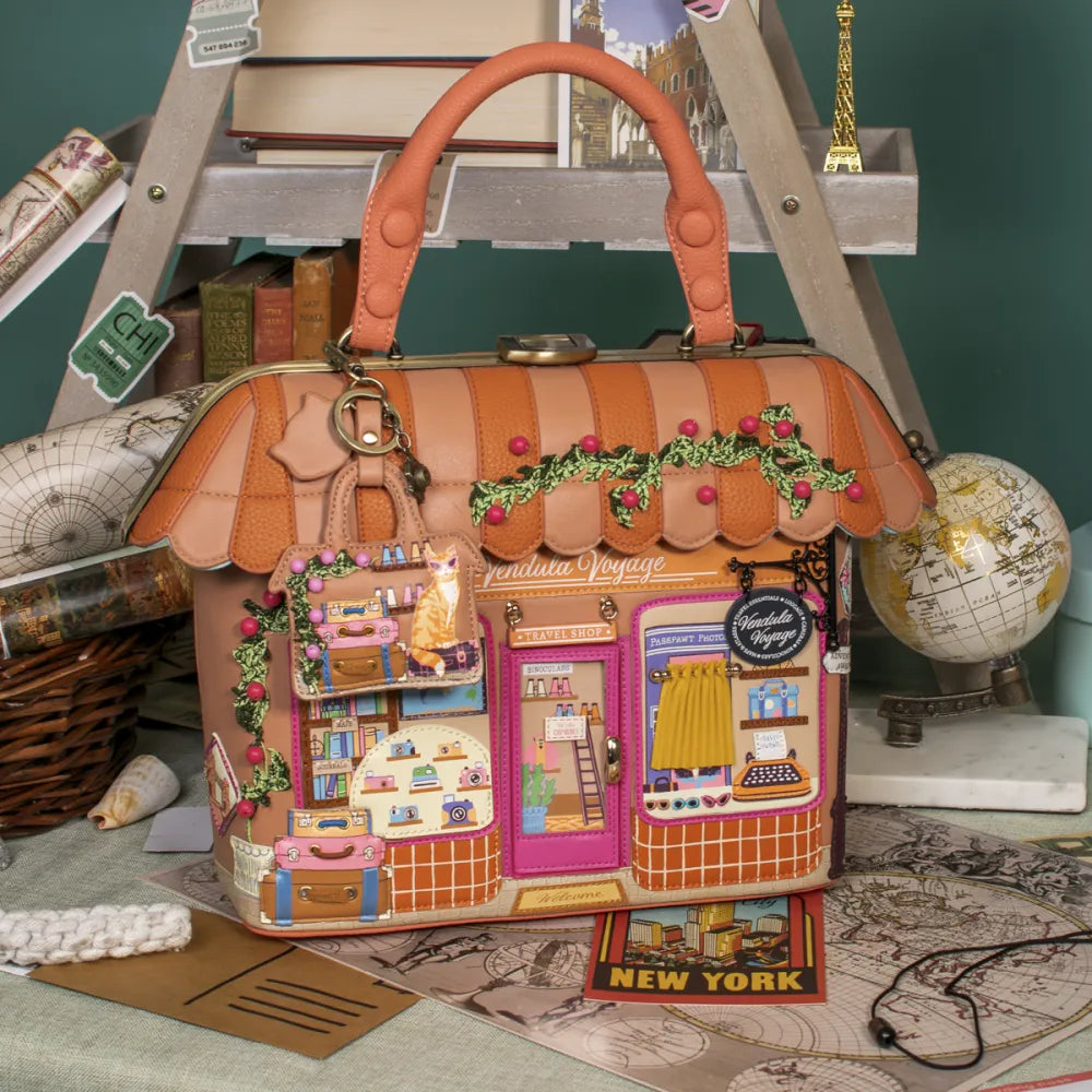 Η Vendula London δημιουργεί ξανά ένα μικρό έργο τέχνης που θα σας ταξιδέψει! Η τσάντα Voyage Travel Shop Grab Bag είναι ο ιδανικός σύντροφος για τις καθημερινές σας δραστηριότητες αλλά και για τις σύντομες αποδράσεις σας, συνδυάζοντας την πρακτικότητα με την απαράμιλλη αισθητική της retro ταξιδιωτικής συλλογής.